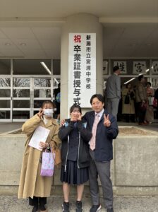 昨日は娘の卒業式。午前中はPTA会長として皆さんにお祝いの言葉を送っていきました。