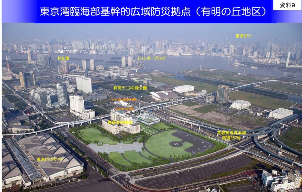 首都直下等の地震が起こった時に、防災の拠点となって機能する施設とエリアです。